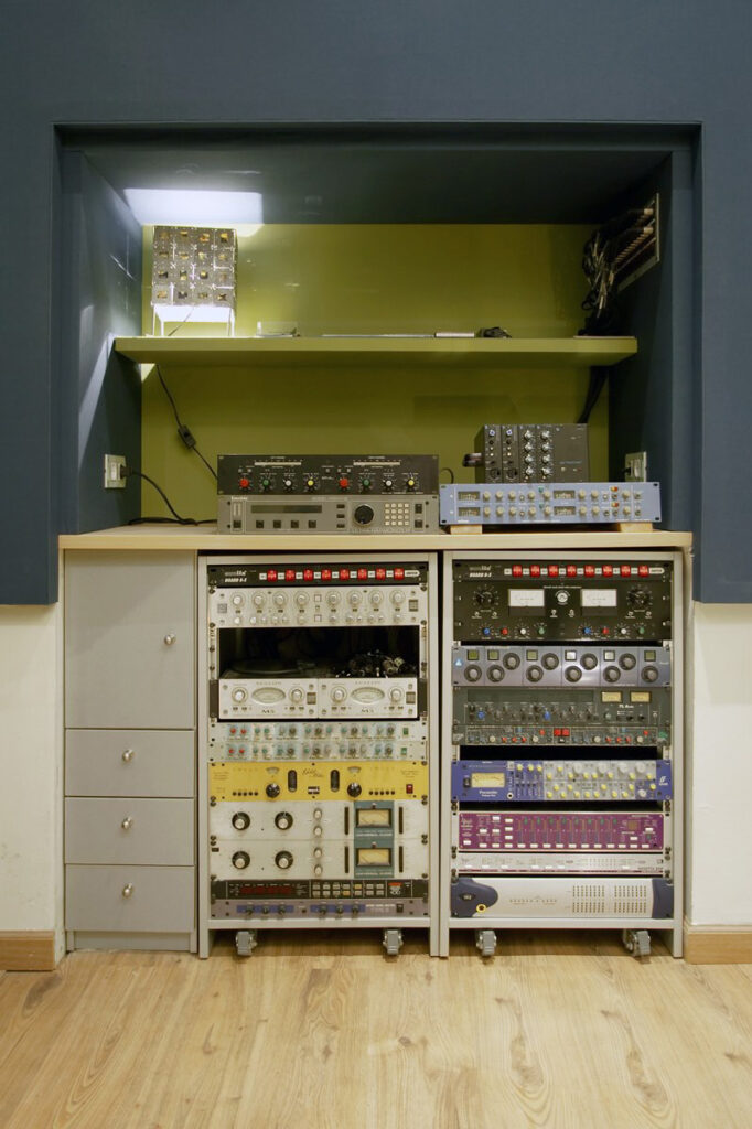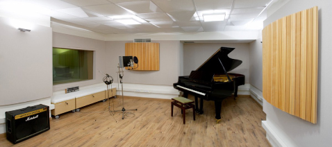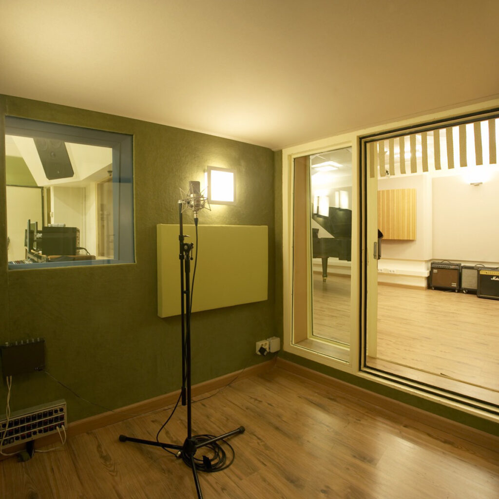 Los estudios constan de una sala de grabación de 40 m2, una cabina de aislamiento de 4 m2 y un control de 20 m2, espacios todos ellos con un acondicionamiento acústico del más alto nivel y que permiten la grabación de agrupaciones en vivo con comodidad.